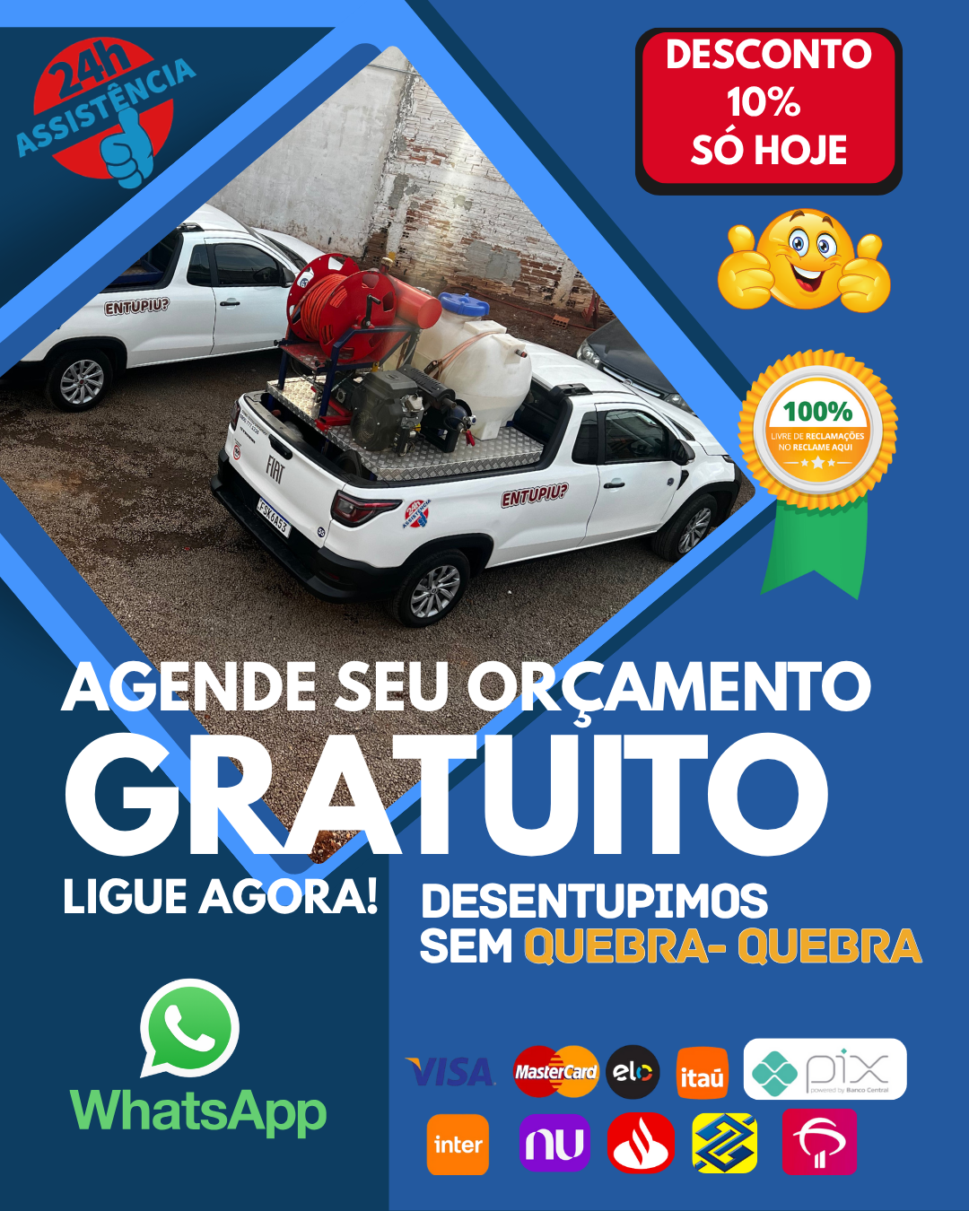 Nossos profissionais estão disponíveis 24 horas por dia, 7 dias por semana para resolver qualquer tipo de entupimento.